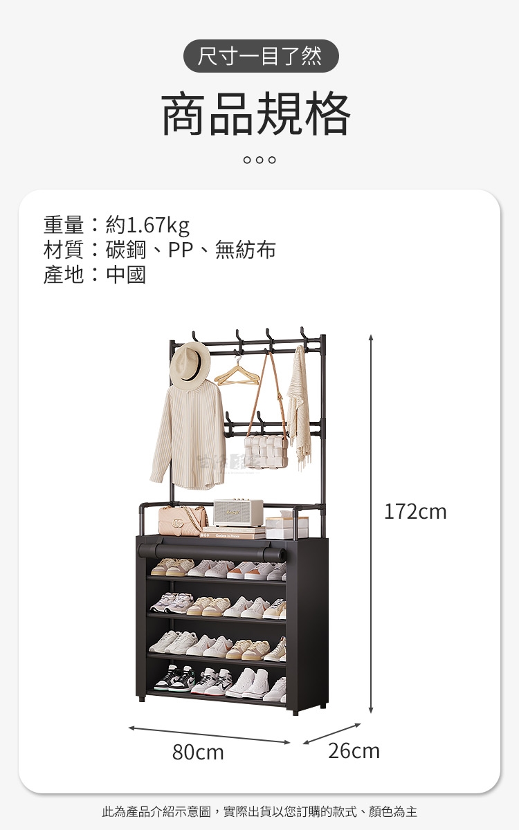 6.商品:落地型一體組合衣帽鞋架80cm*1、黑色布套*1