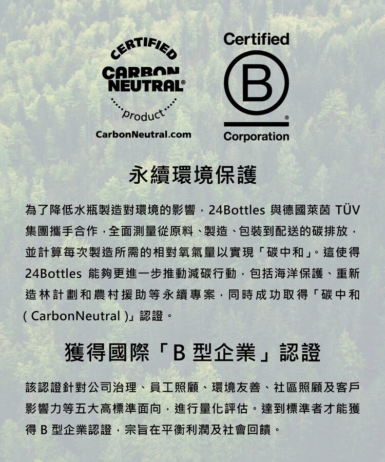 24Bottles 保溫瓶採用雙層真空斷熱層,有效隔絕熱傳導,保溫12小時、保冷24小時。