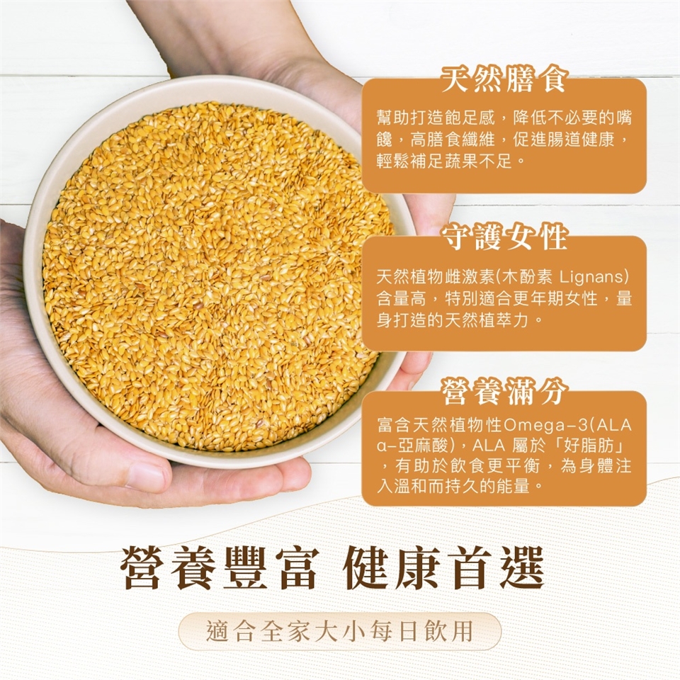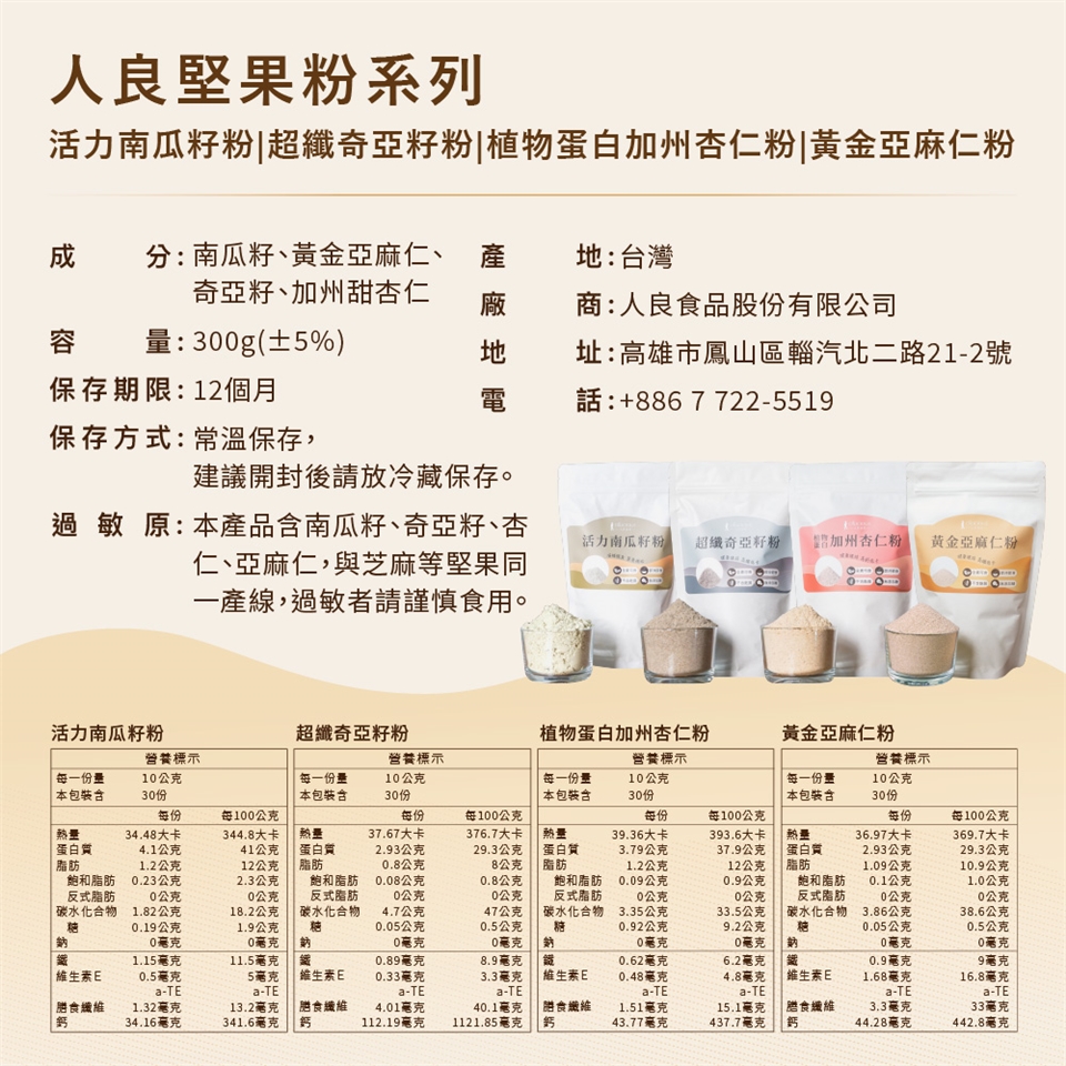 本產品含有亞麻籽,生產製成,設備有處理芝麻、堅果、種子類製品