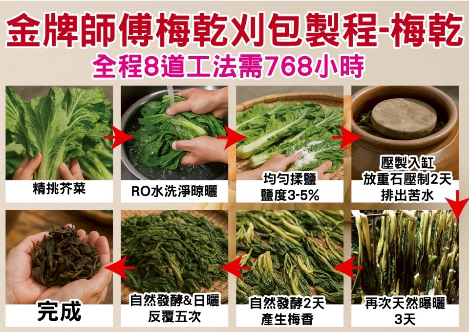 由金牌師傅郭家宇嚴選食材、監製手工製程,還原道地台灣古早味。梅干菜入味,肥而不膩