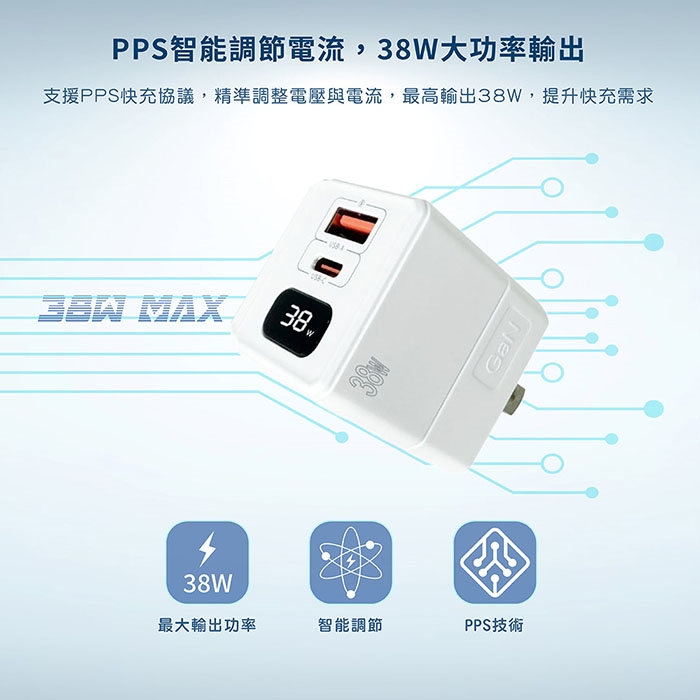 ◎ 38W大功率,小體積高效能,最新PD3.0快充