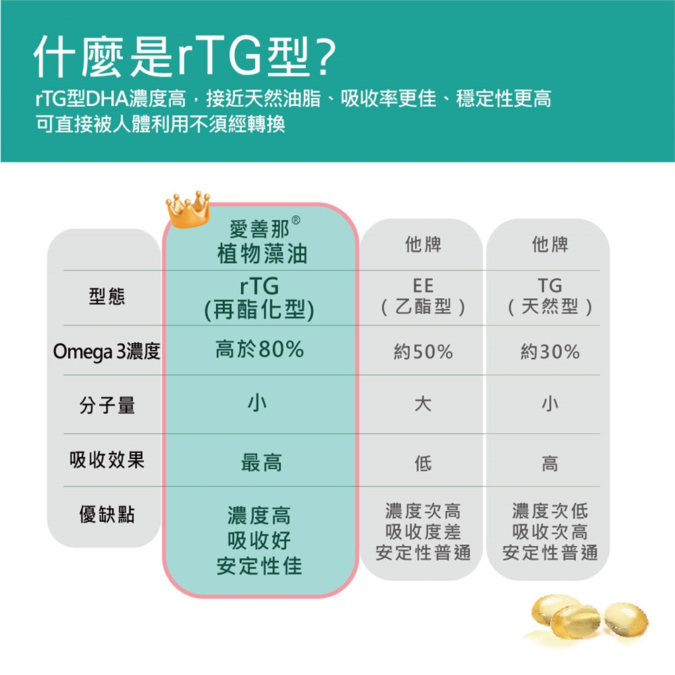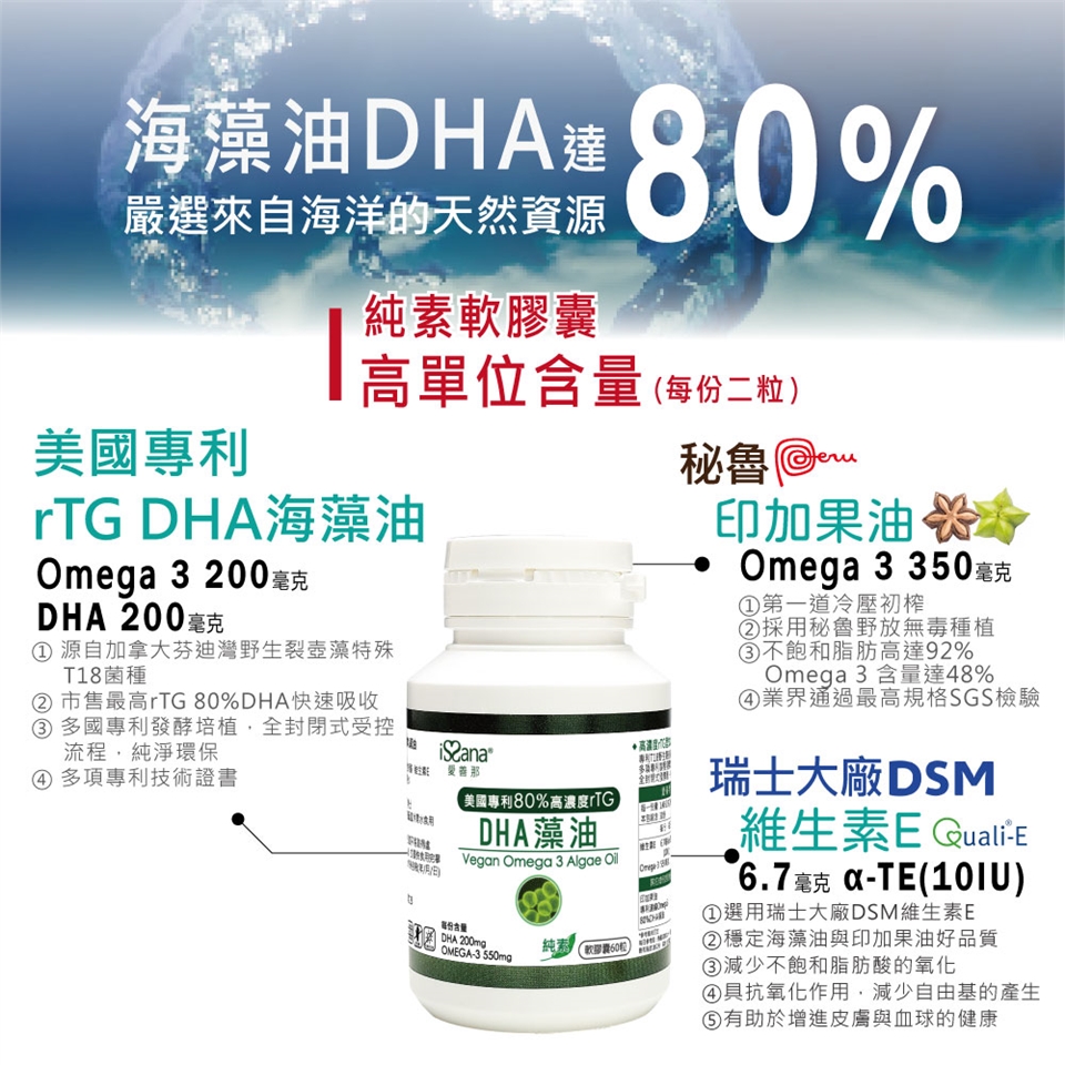 主要源於深海中的藻類,在加拿大芬迪灣中發現大西洋野生裂壺藻品種,以T18專利微藻發酵培植製程,多國專利rTG型式,全程封閉發酵槽、冬化分餾萃取高濃度80%DHA。