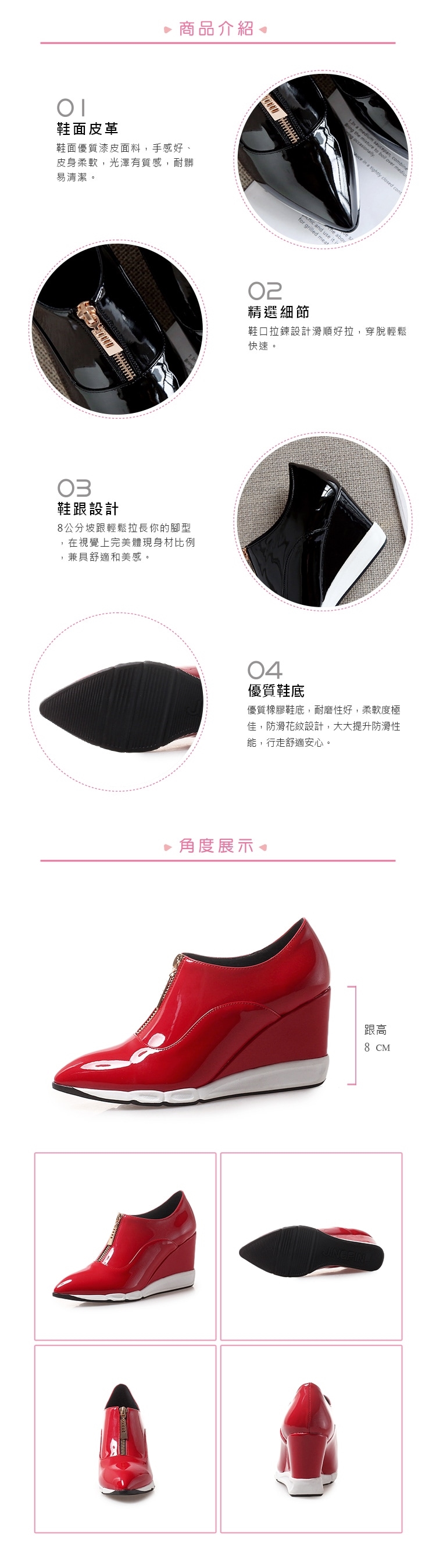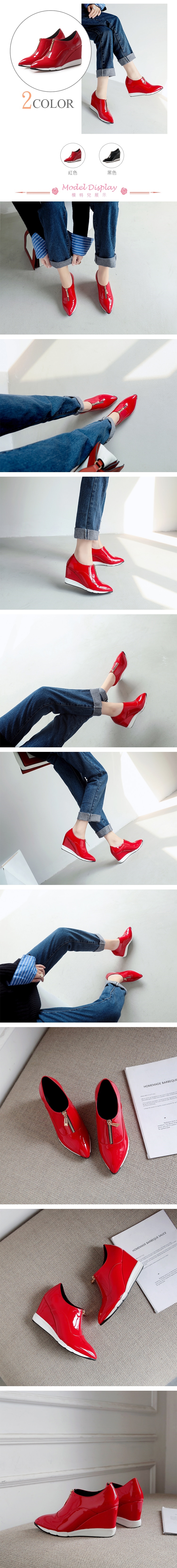 【Kissxxx】尖頭漆皮坡跟單鞋/美腳效果尖頭亮漆皮深口坡跟單鞋 女鞋 紅