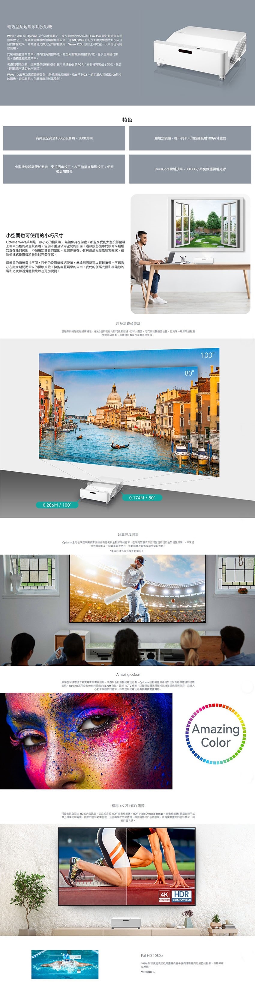 OPTOMA 奧圖碼 Wave 120U 輕巧型超短焦家用投影機