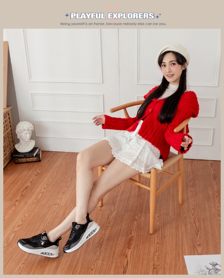 PLAYBOY 漂浮輕彈力氣墊鞋-黑粉