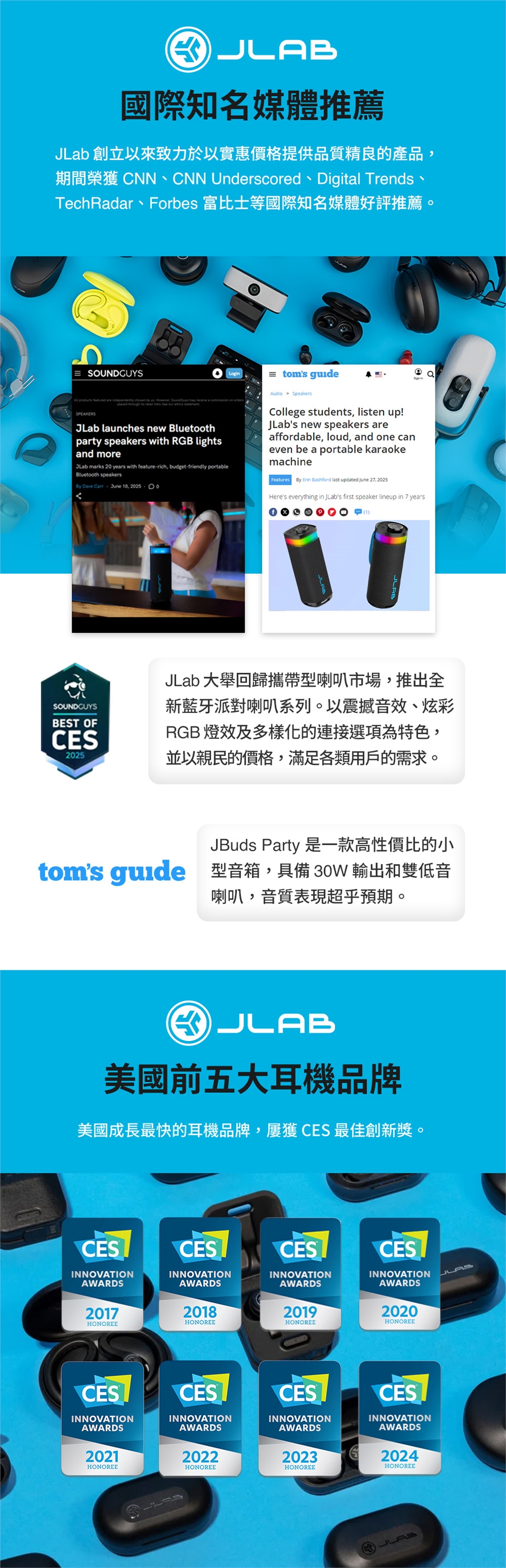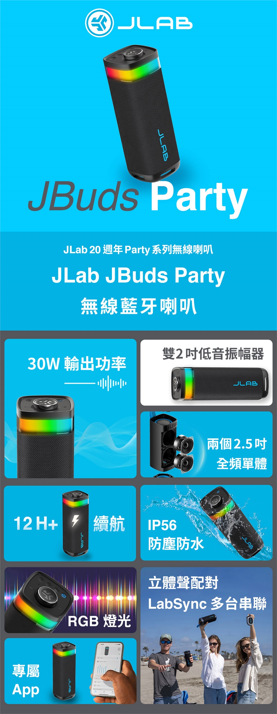 - 產品名稱:JLab JBuds Party 無線藍牙喇叭