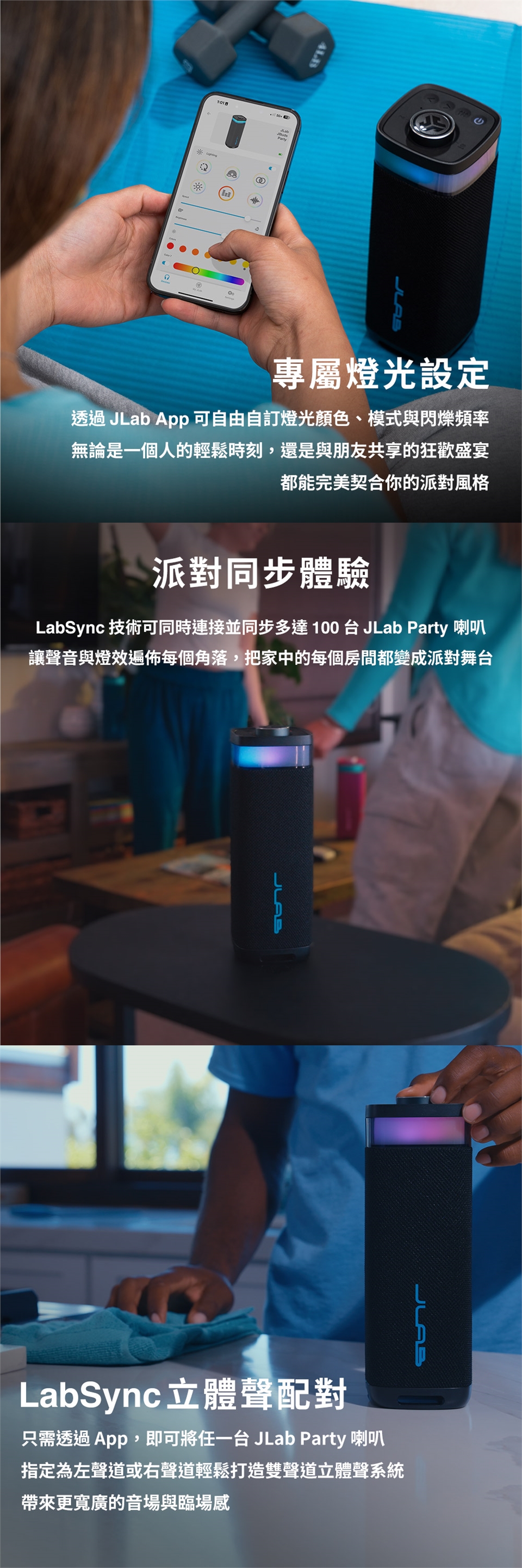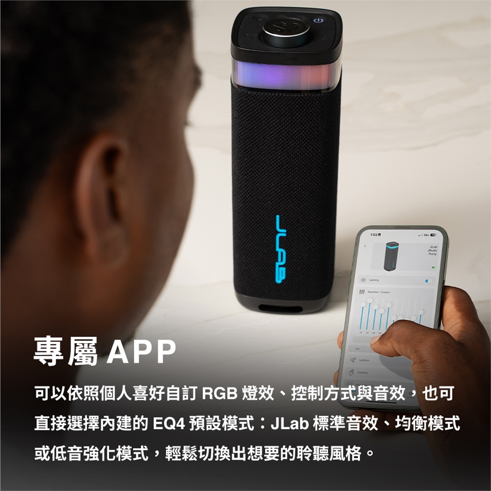 - 專屬調控| JLab App 自訂 EQ、燈效與按鍵功能