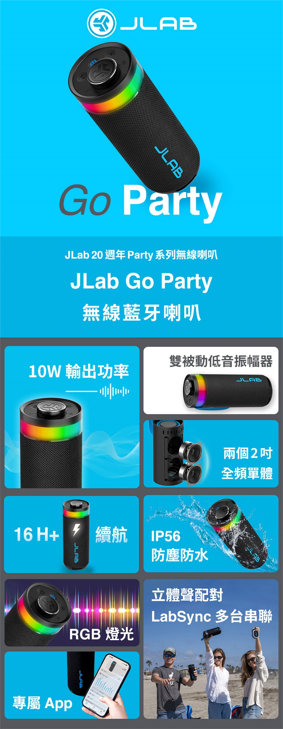 - 產品名稱:JLab Go Party 無線藍牙喇叭