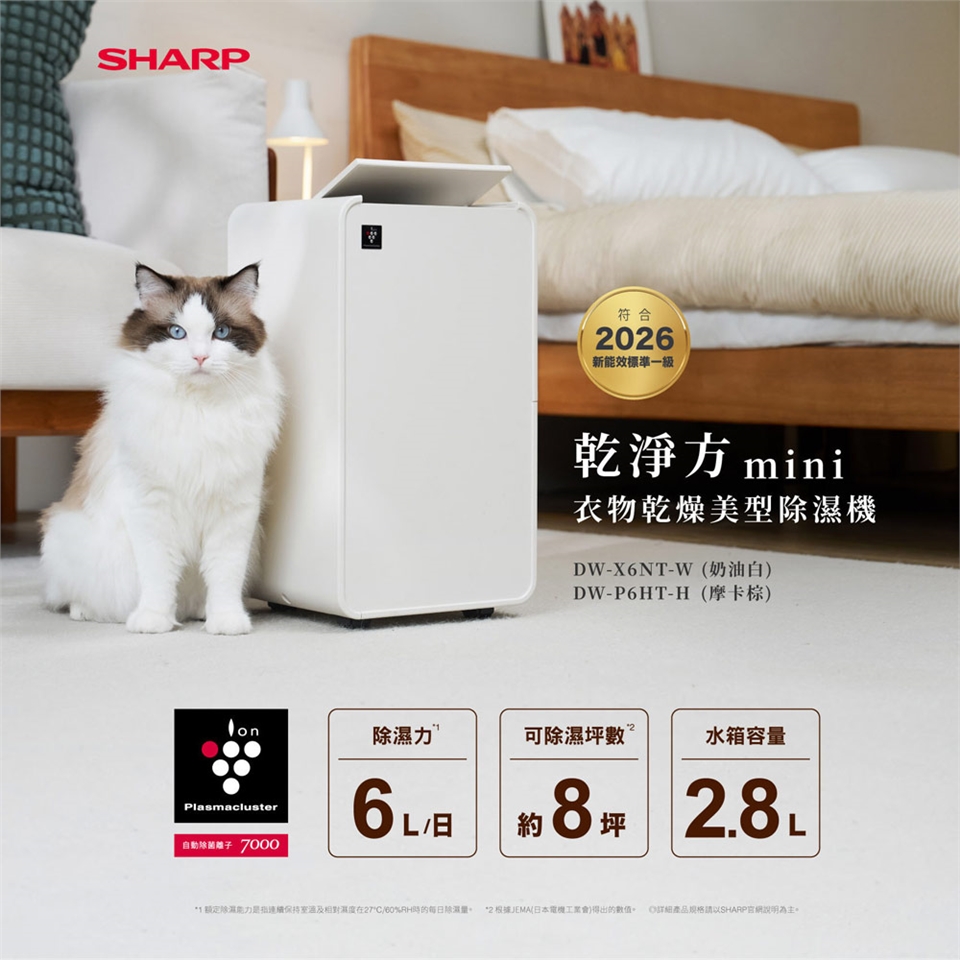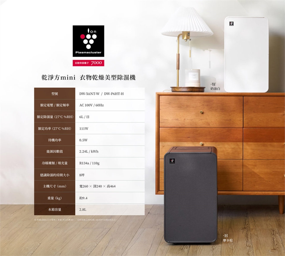 *除濕能力6L/日(B式/室溫27 ℃/相對濕度60%)