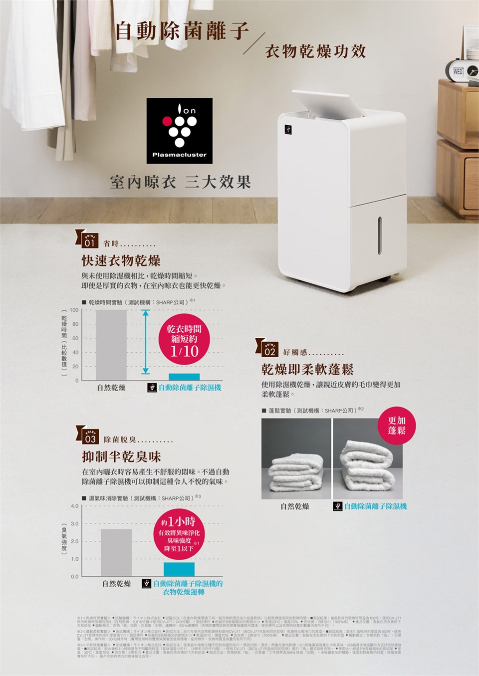 自訂除溼:自動除濕/衣物乾燥/連續除濕/濕度設定四種模式