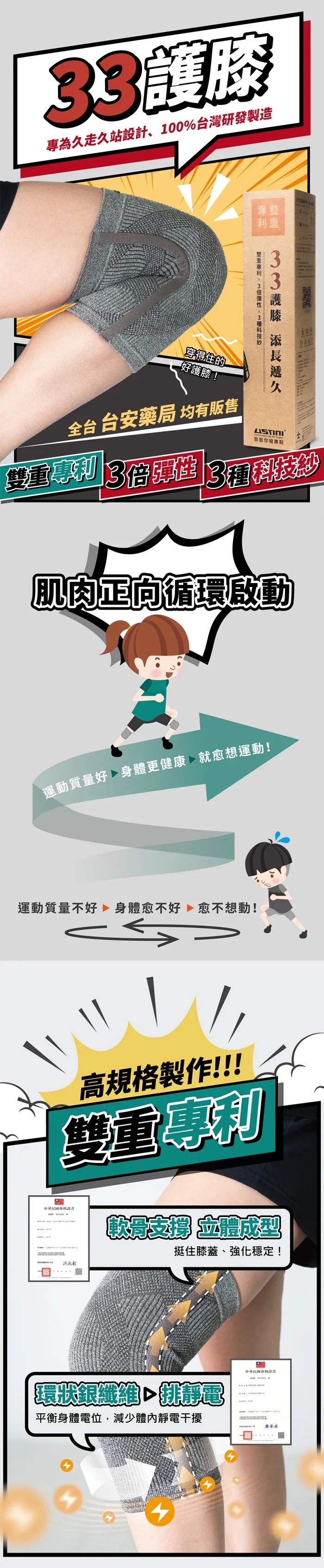 ◆ 雙重專利:環狀銀纖維+立體成型軟骨支撐 有效釋放體內靜電 穩定膝蓋關節 舒緩久站久走的不適