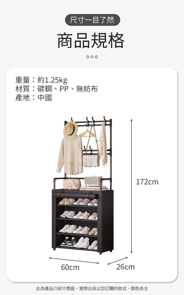 6.商品:落地型一體組合衣帽鞋架60cm*1、黑色布套*1