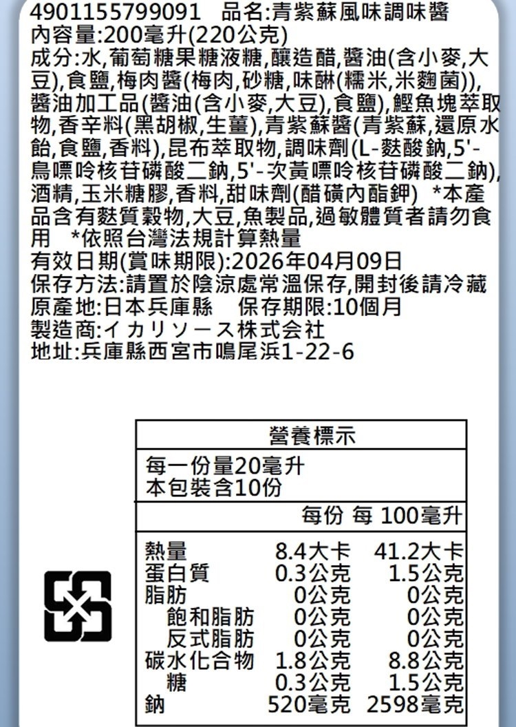 保存期限:請置於陰涼處常溫保存,保存期限12個月