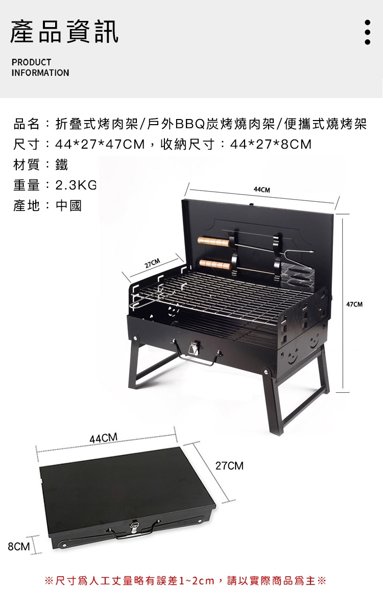 品名:折叠式烤肉架/戶外BBQ炭烤燒肉架/便攜式燒烤架