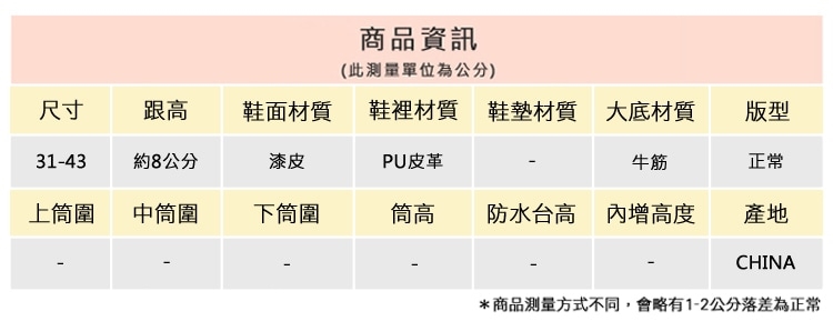 2.鞋類商品依功能及用途之不同,鞋底各有其止滑係數之個別不同,使用鞋類商品請用於正常平坦之路面,非雨鞋或雨靴類商品,請避免穿著於下雨濕滑路面上行走。
