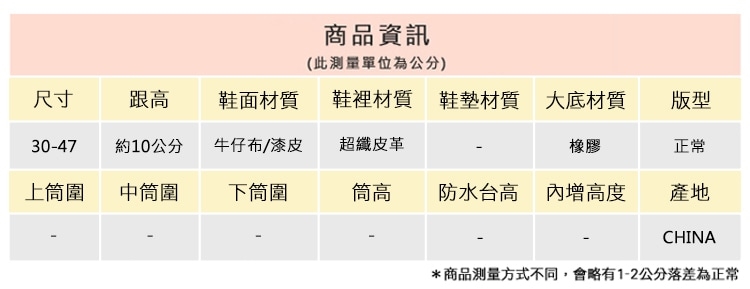 2.鞋類商品依功能及用途之不同,鞋底各有其止滑係數之個別不同,使用鞋類商品請用於正常平坦之路面,非雨鞋或雨靴類商品,請避免穿著於下雨濕滑路面上行走。