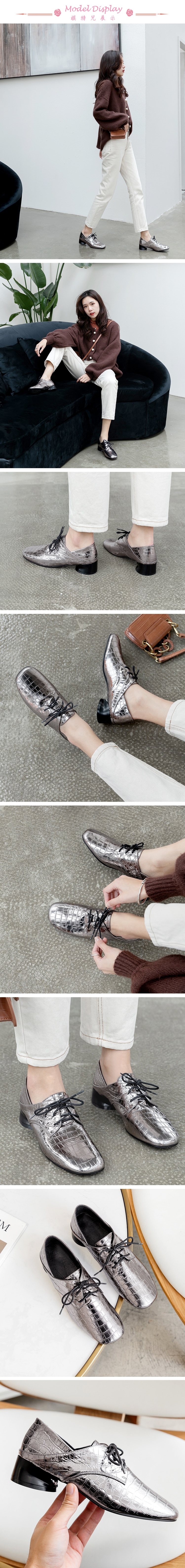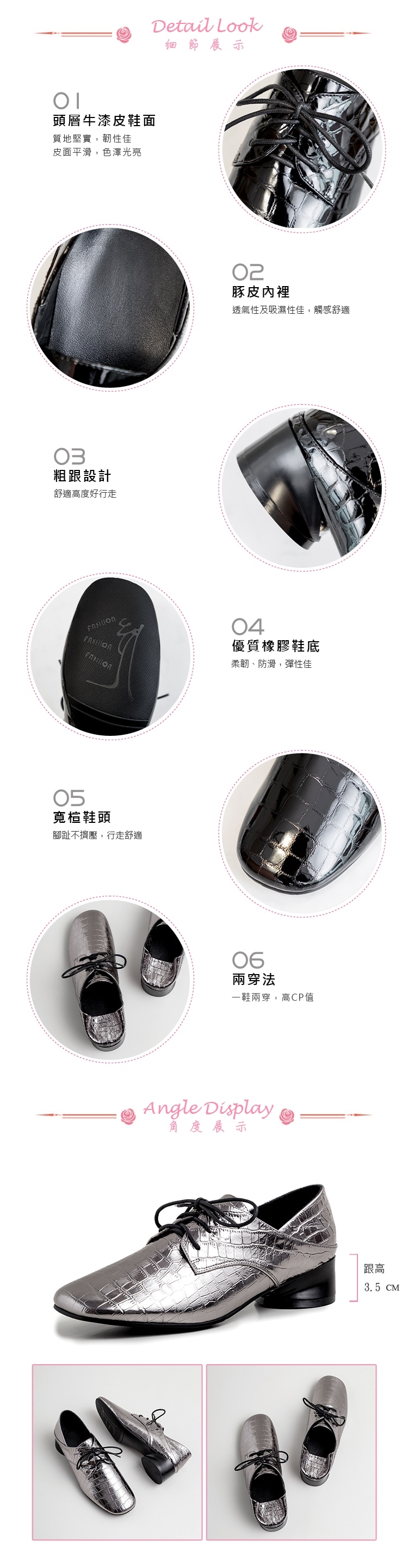【Kissxxx】全真皮鱷魚紋兩穿粗跟鞋/全真皮頭層牛皮金屬鱷魚皮壓紋舒適寬楦兩穿法粗跟鞋 女鞋 銀