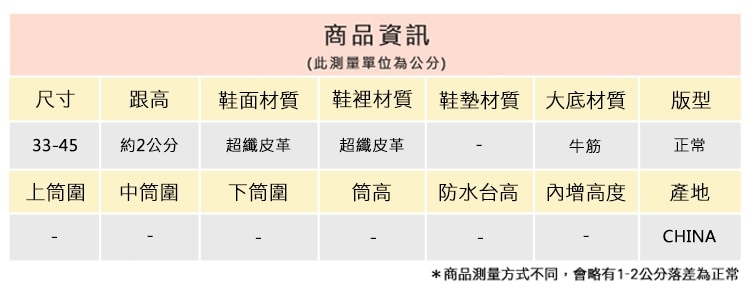 2.鞋類商品依功能及用途之不同,鞋底各有其止滑係數之個別不同,使用鞋類商品請用於正常平坦之路面,非雨鞋或雨靴類商品,請避免穿著於下雨濕滑路面上行走。