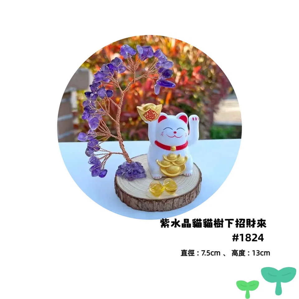 #紫水晶貓貓樹下招財來