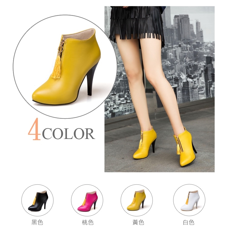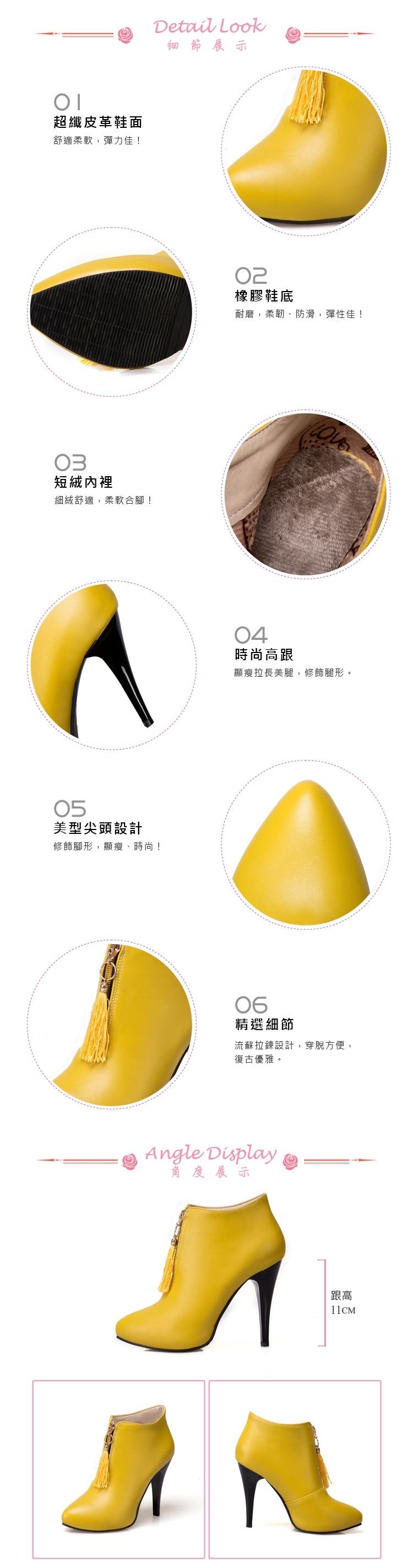 【Kissxxx】尖頭流蘇拉鍊高跟踝靴/尖頭復古流蘇拉鍊造型高跟踝靴 女鞋 黃