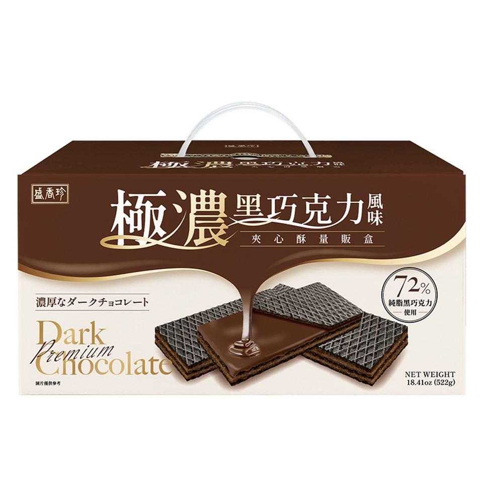 盛香珍 極濃黑巧克力風味夾心酥522g(量販禮盒.72%)