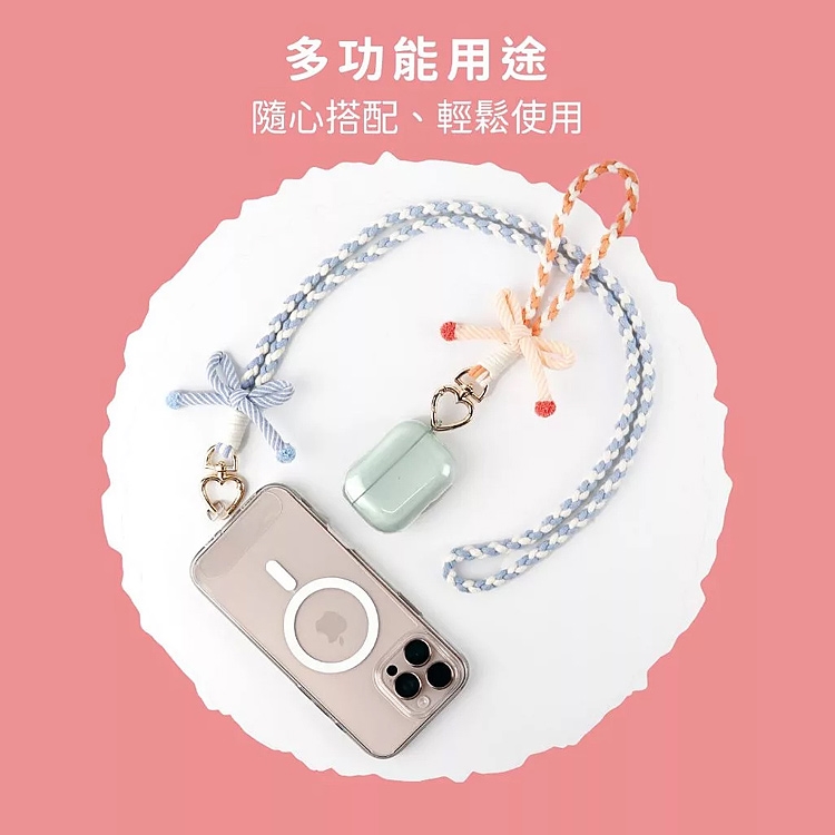 DAPAD 手工編織夢幻馬卡龍色系 蝴蝶結手機掛繩-短