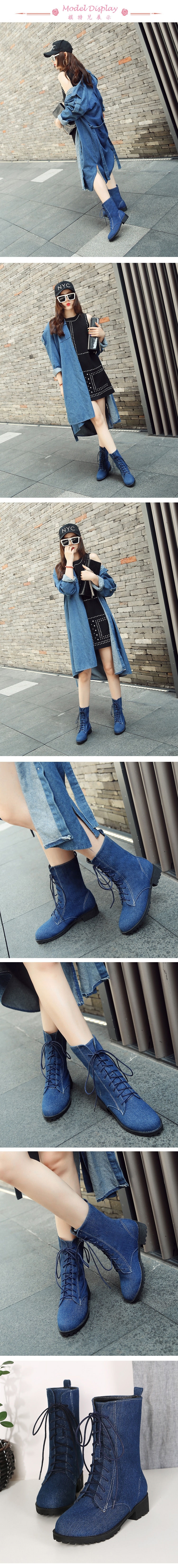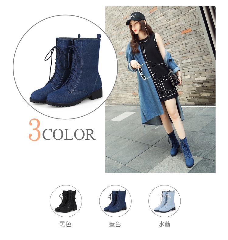 【Kissxxx】牛仔布休閒馬丁靴/百搭經典牛仔布時尚休閒馬丁靴 女鞋 藍