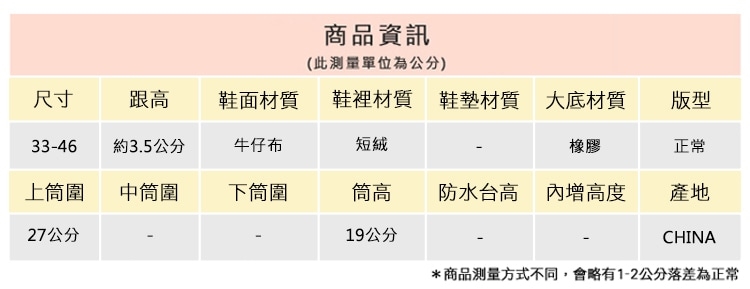 2.鞋類商品依功能及用途之不同,鞋底各有其止滑係數之個別不同,使用鞋類商品請用於正常平坦之路面,非雨鞋或雨靴類商品,請避免穿著於下雨濕滑路面上行走。
