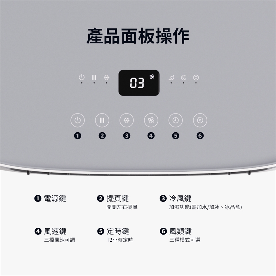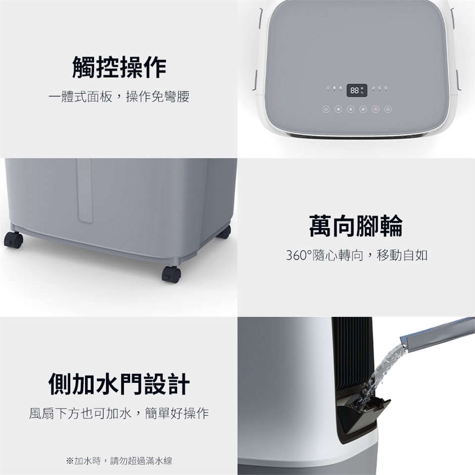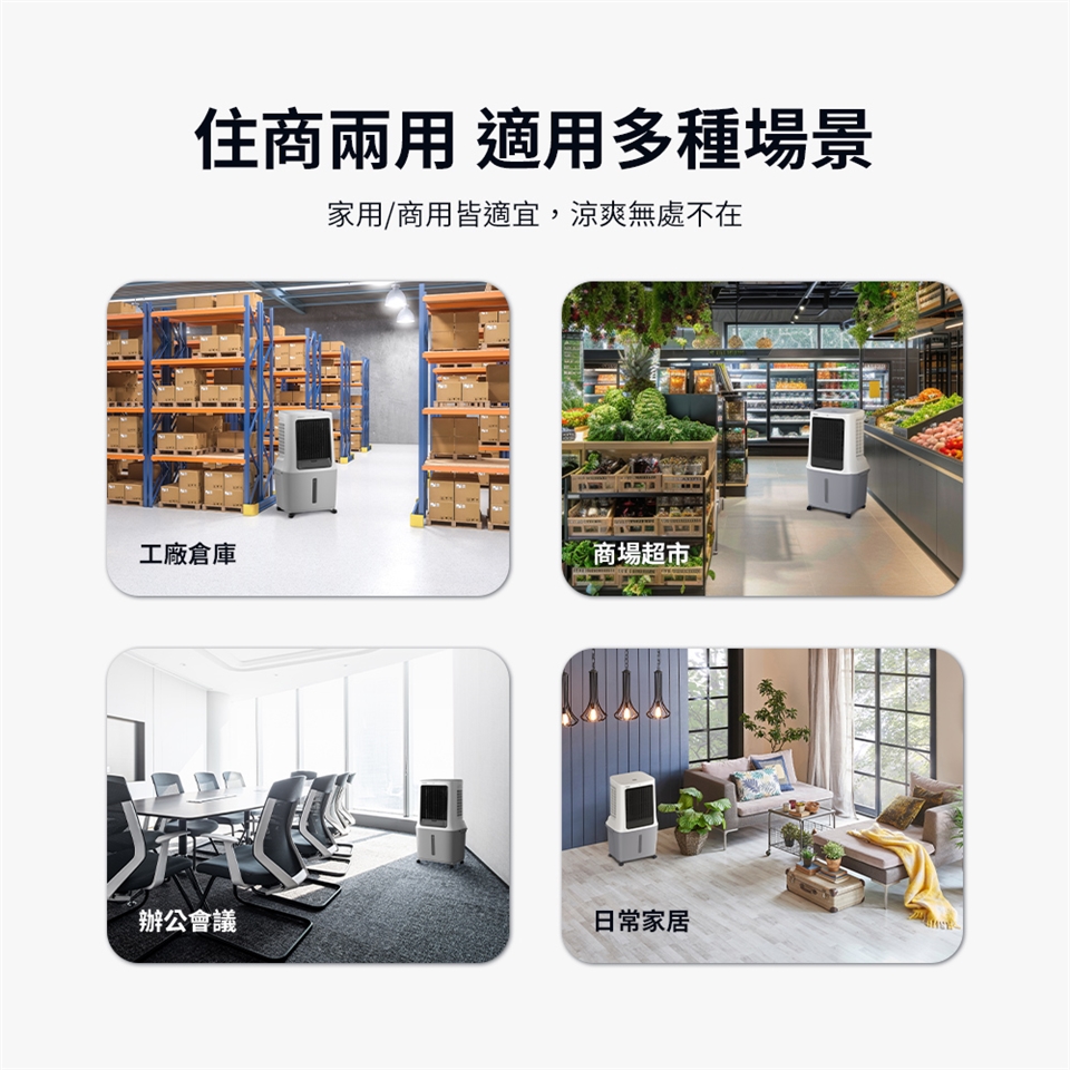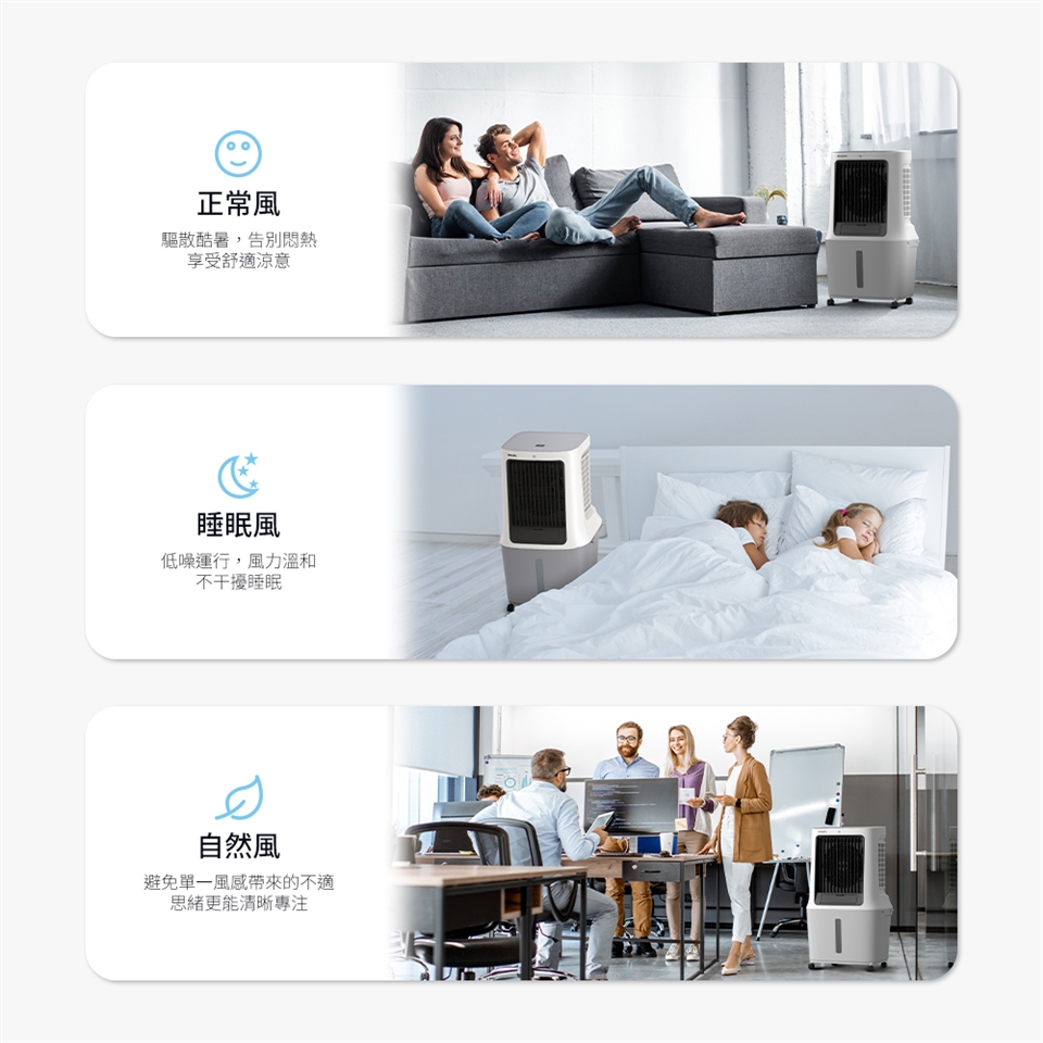 三面水簾+7片大扇葉,送風可達12米,快速降溫