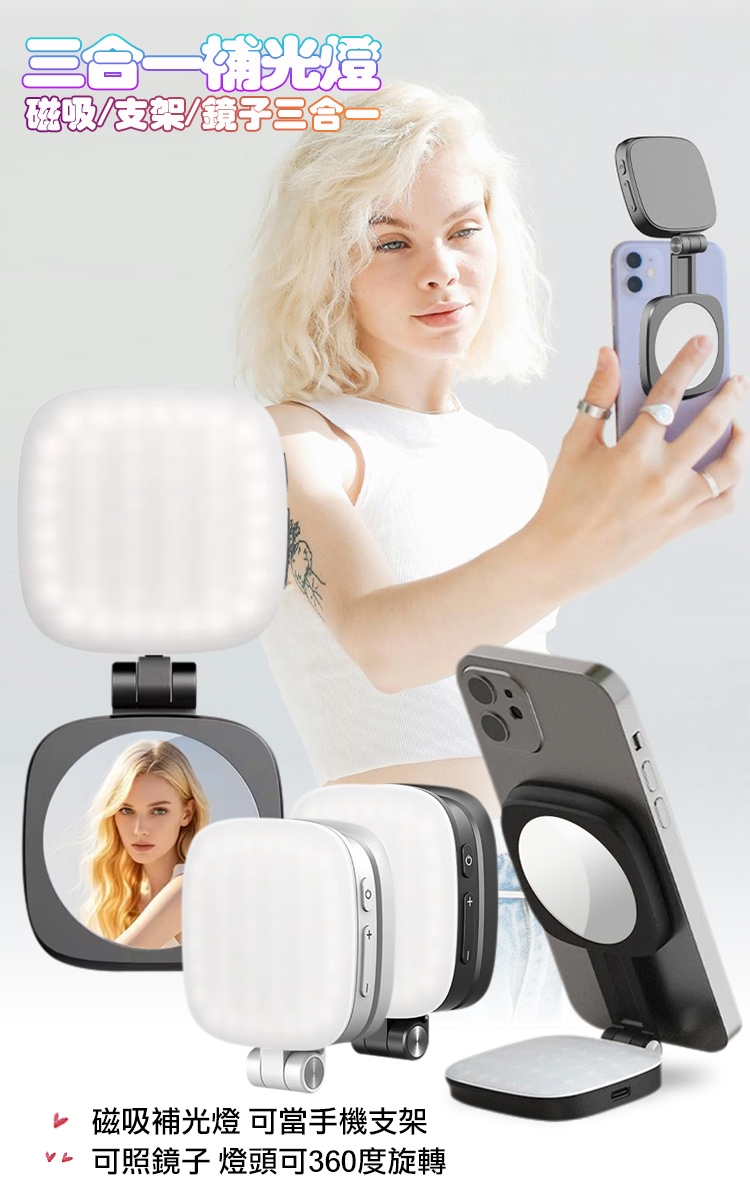 CITY BOSS ZX-662 磁吸支架鏡子3合1磁吸補光燈