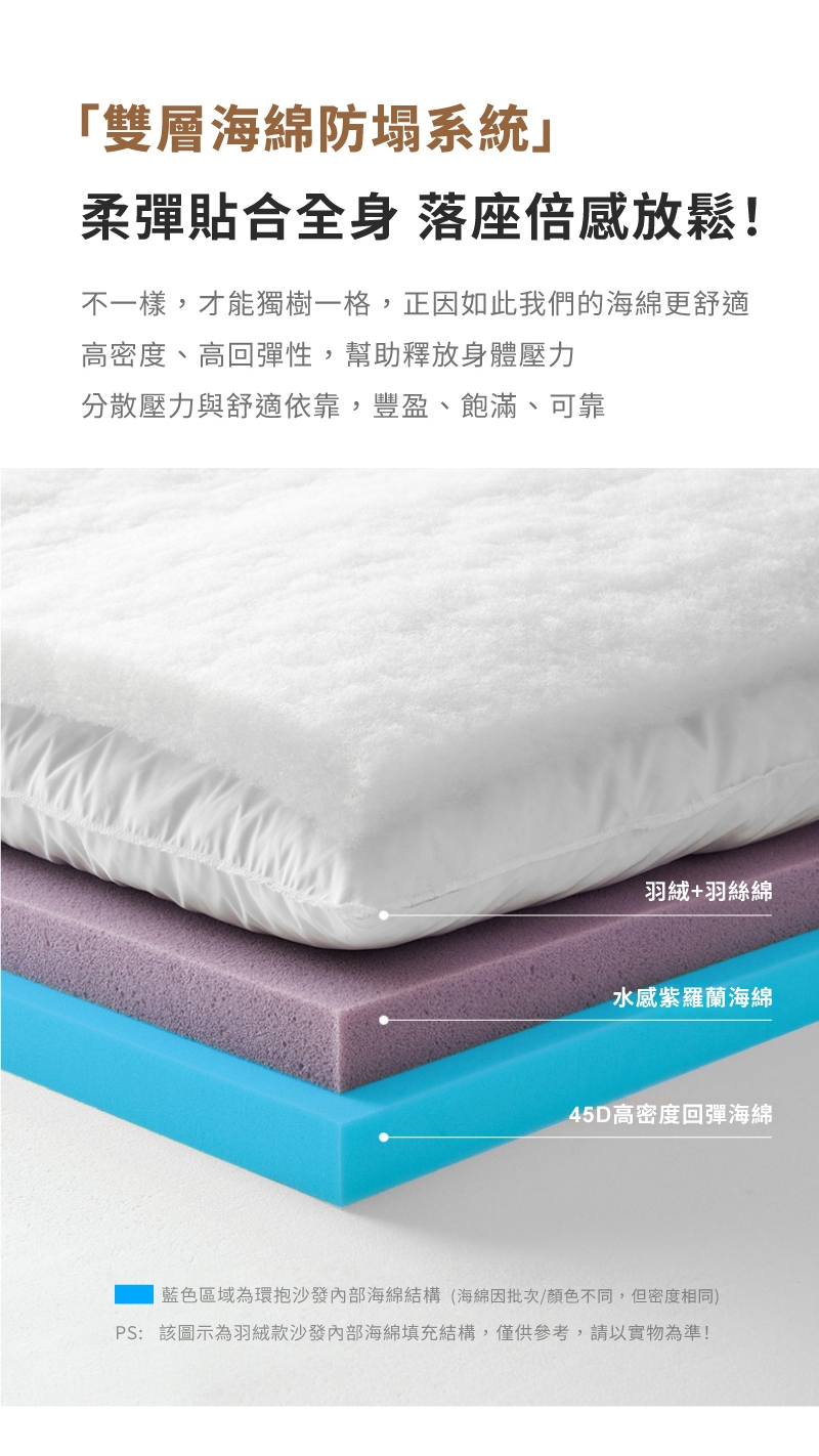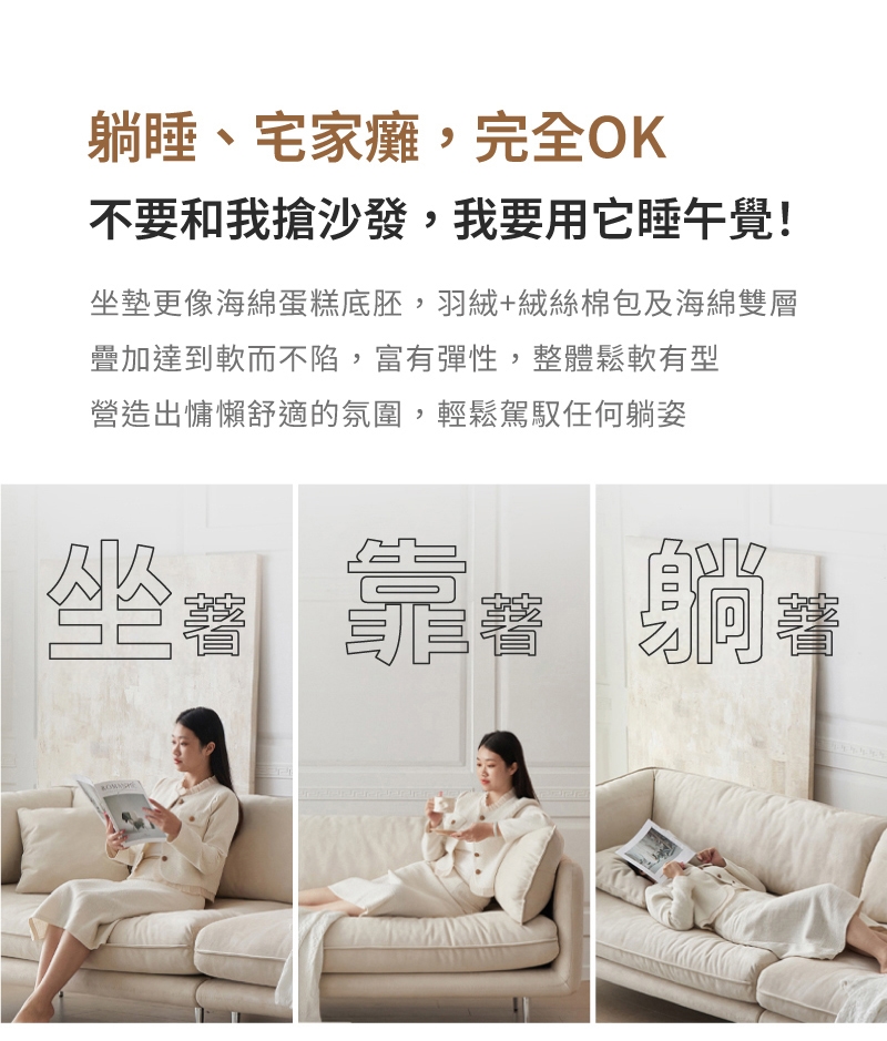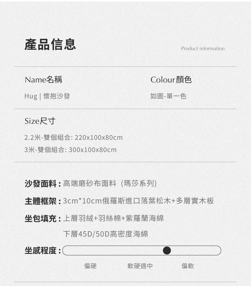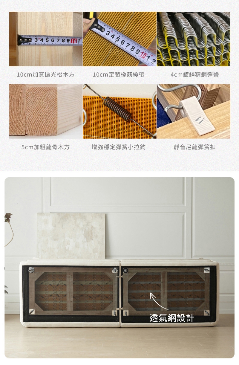 材質:磨紗布+落葉松木+實木板+羽絨綿+海綿