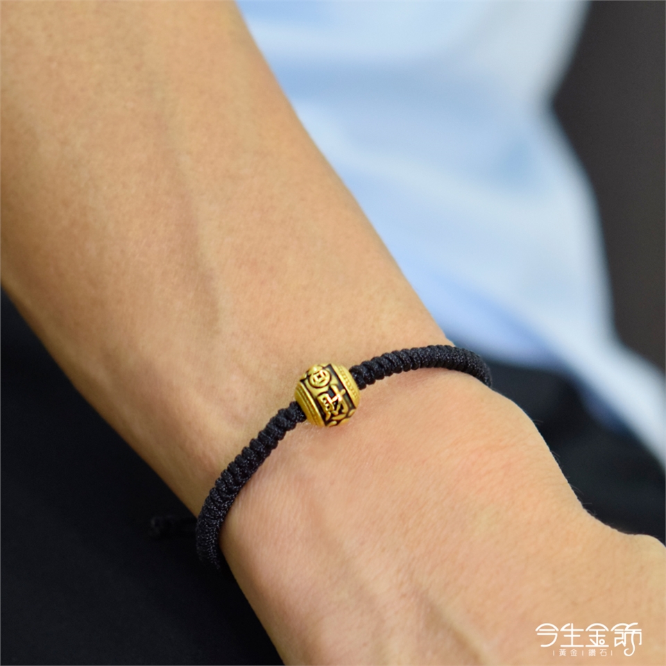 材質:純黃金9999+編織黑繩