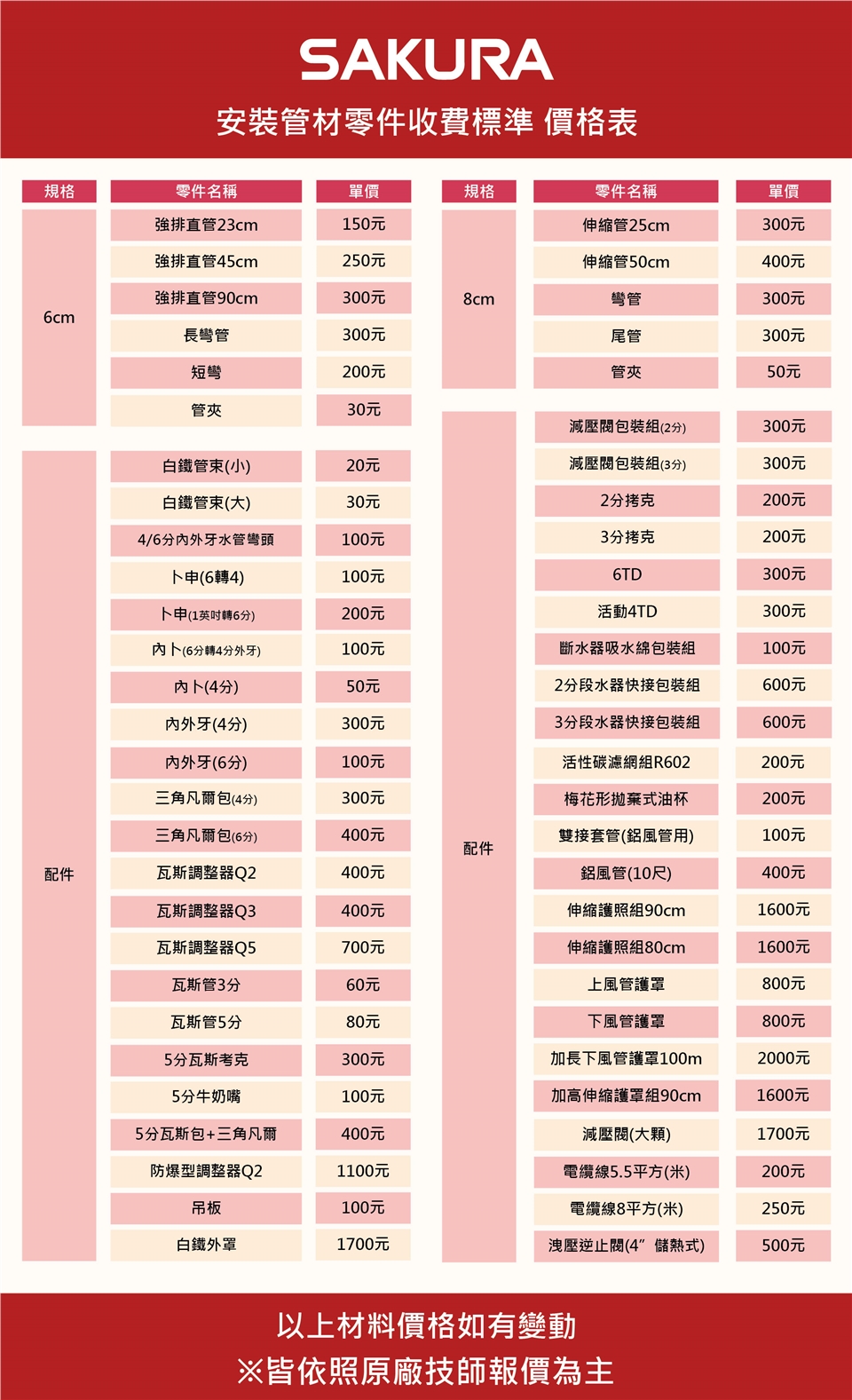 基本安裝範圍:以原廠商品箱內所附之零件安裝,無挖孔洞、割玻璃、拆廚櫃、水泥工程、配電線|管線|重新配線施工等服務,如有加購它類配件,則以技師現場報價另外酌收費用為準。