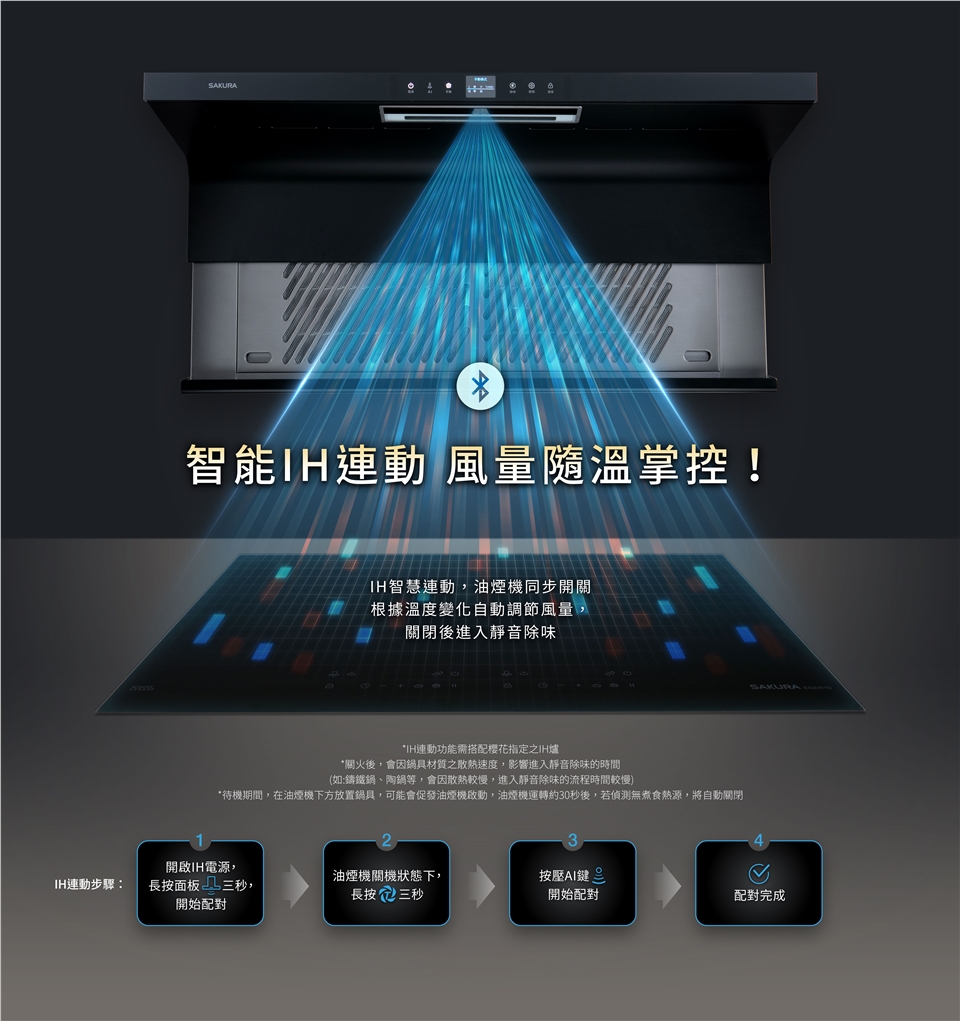 ▪ 智能IH連動,油煙機與IH同步啟閉