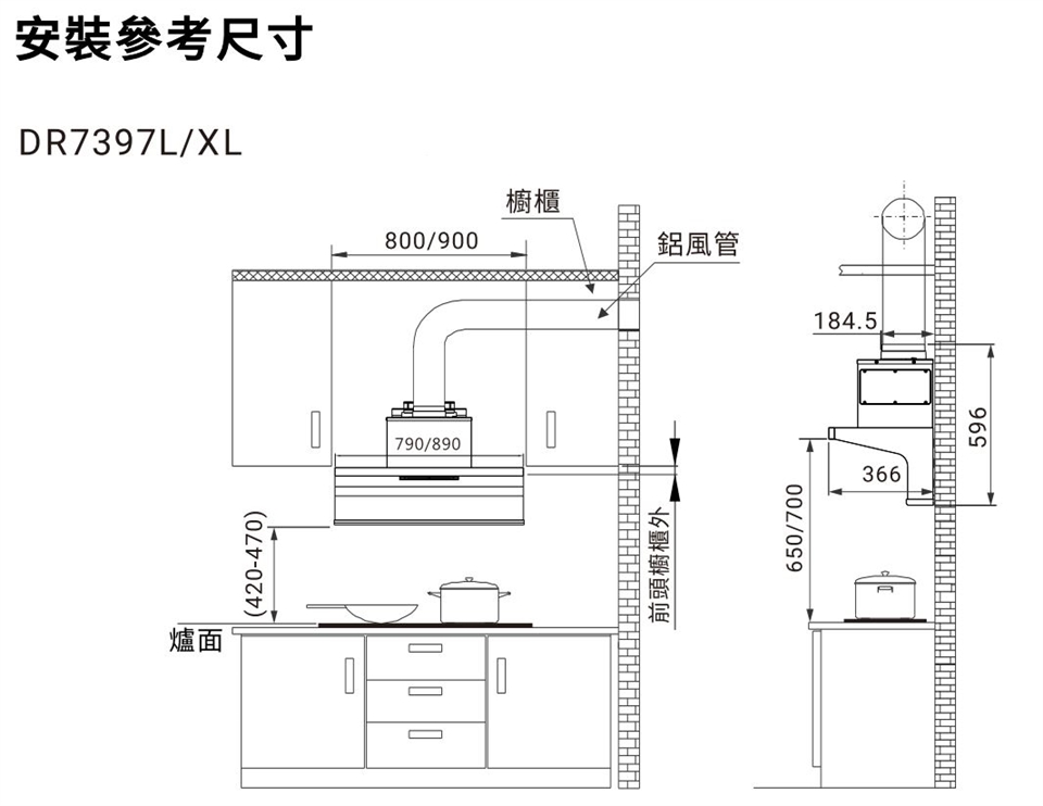 下單前建議先測量原先油煙機與瓦斯爐檯面的距離、油煙機的寬度尺寸、有上方櫥櫃空間尺寸,是否符合安裝尺寸,若有疑慮皆可備註詢問,或參考商品頁面"安裝參考尺寸"圖,謝謝