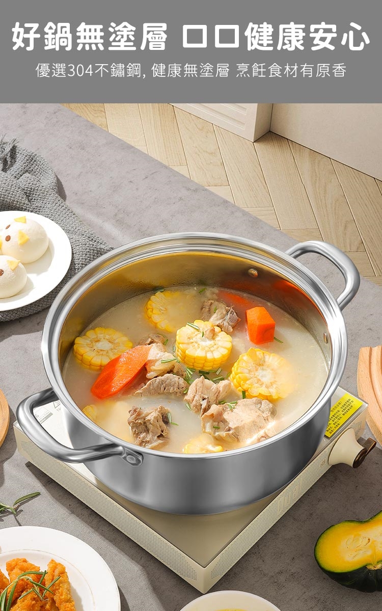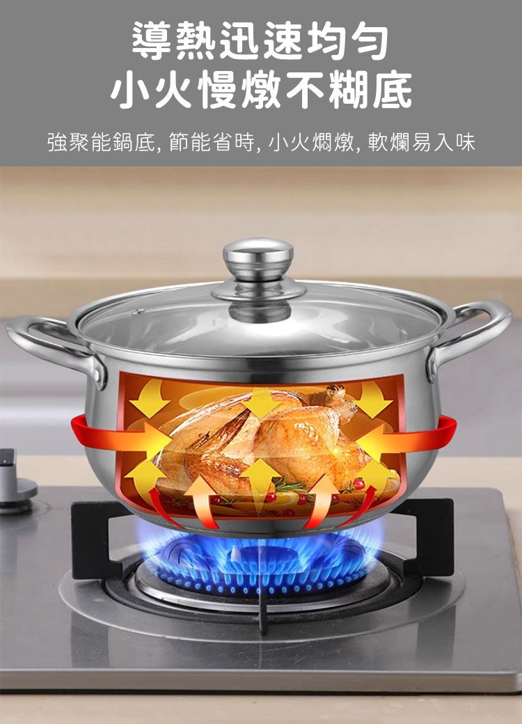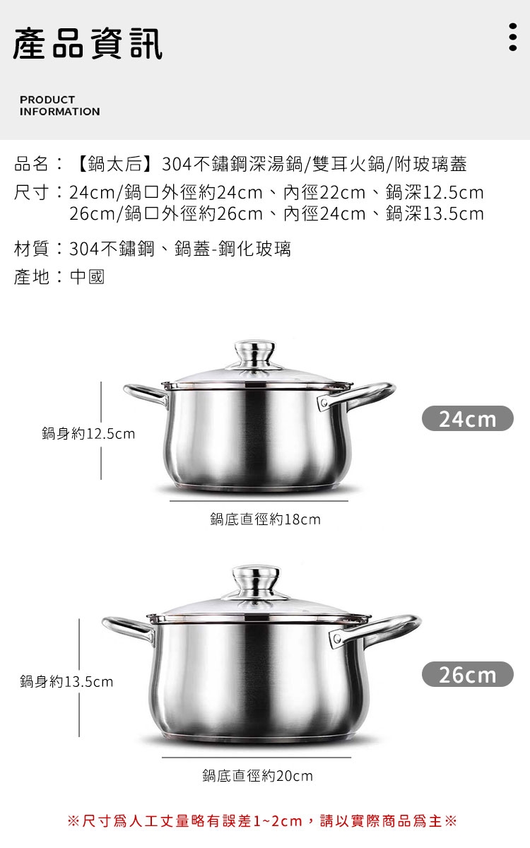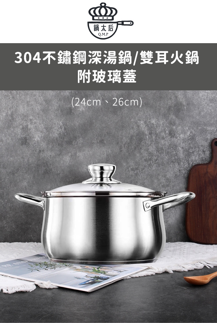 品名:【鍋太后】304不鏽鋼深湯鍋/雙耳火鍋/附玻璃蓋