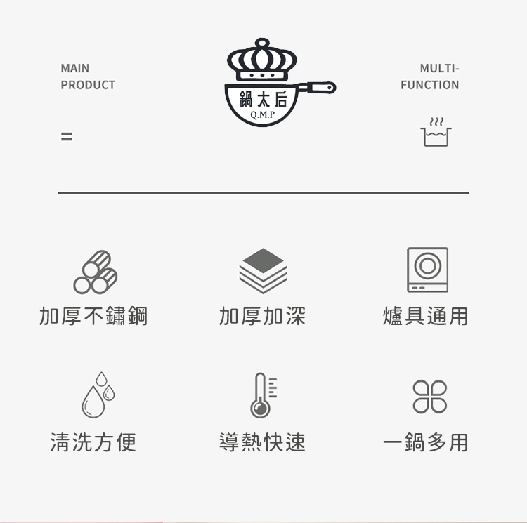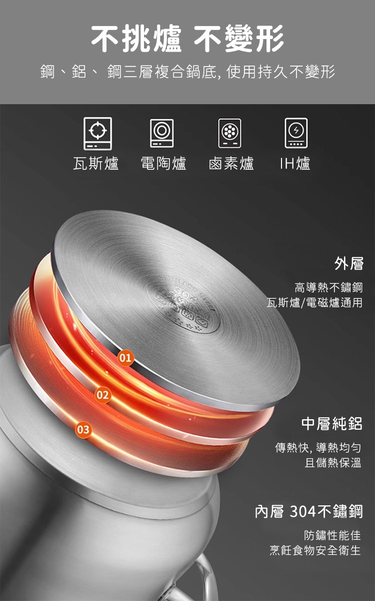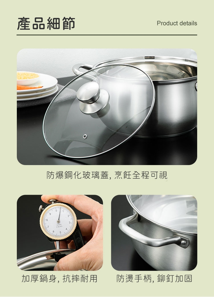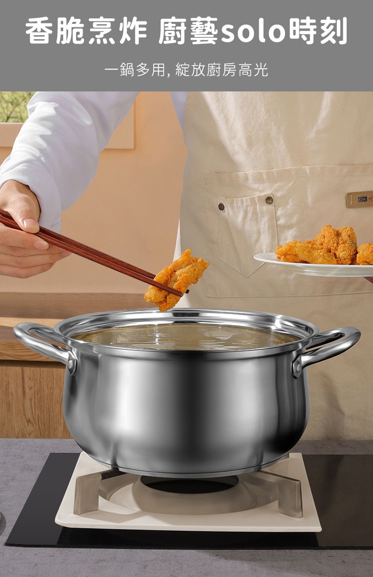 品名:【鍋太后】304不鏽鋼深湯鍋/雙耳火鍋/附玻璃蓋