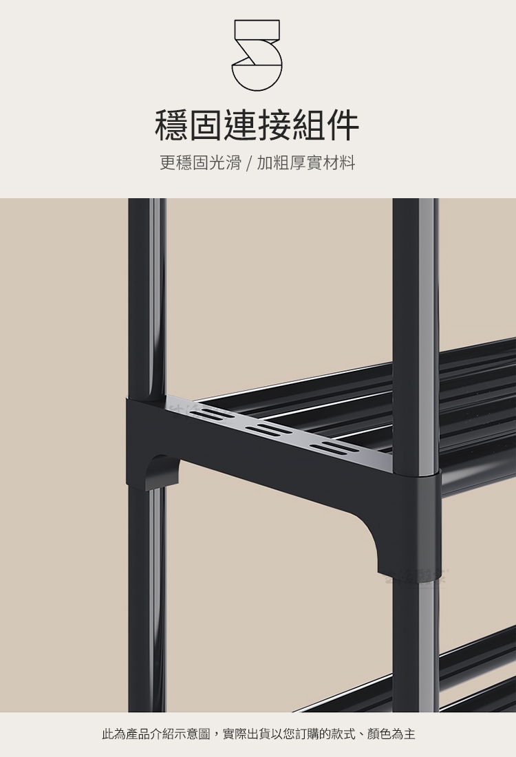 「分層分類收納」回到家順手將衣服外套、帽子、鞋子、包包等各種物品整齊收在同一個地方,不再亂成一團。「多功能一體」,靈活使用,在同一個架子上就能搞定所有收納需求!👕👒👟
