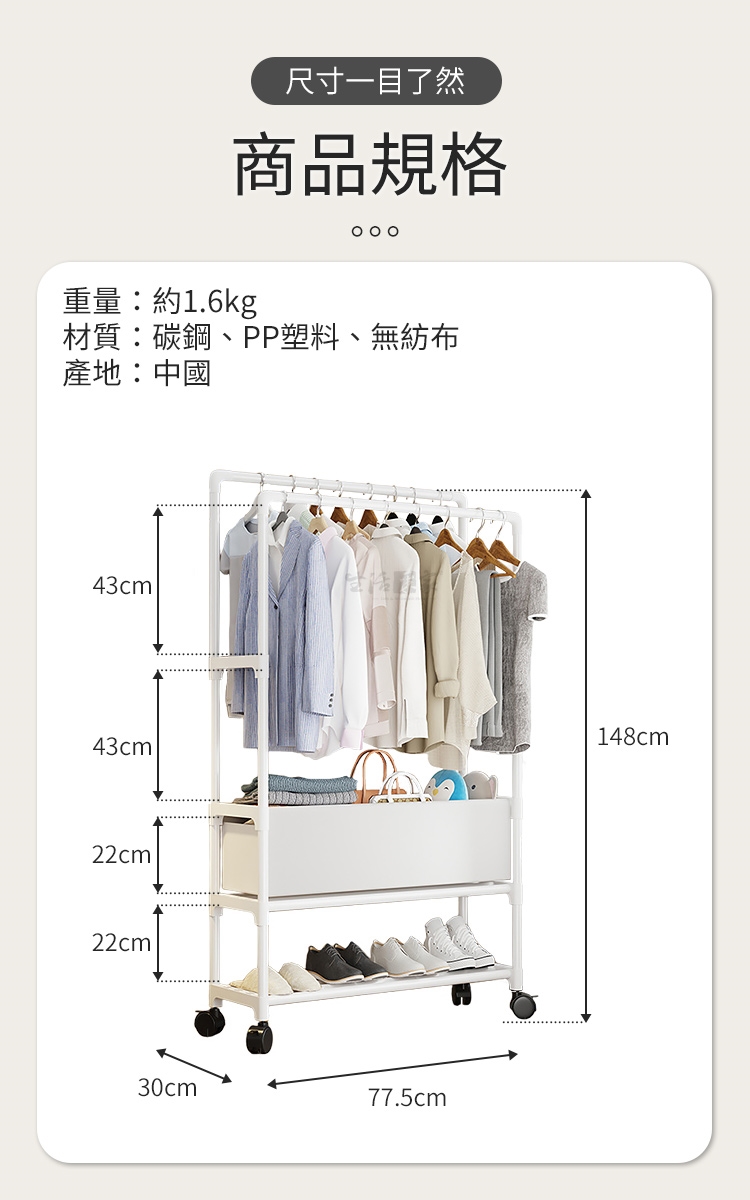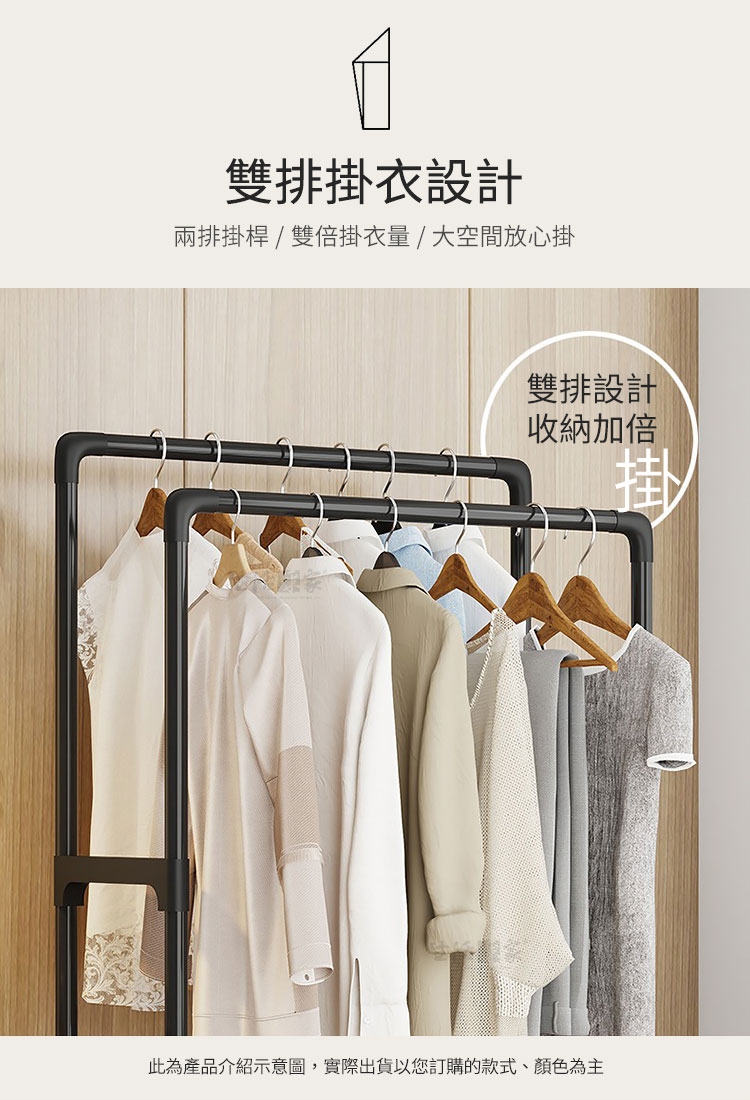 最貼心的是,它還配有「滑輪」,日常移動或地板清潔,分分鐘手到擒來。「加粗鋼管」設計,承重力佳,掛放再多的衣服或鞋子都完全沒問題。💪🧥