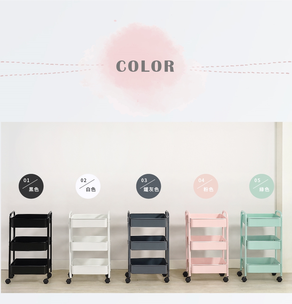 商品品名 : 輕巧三層收納推車