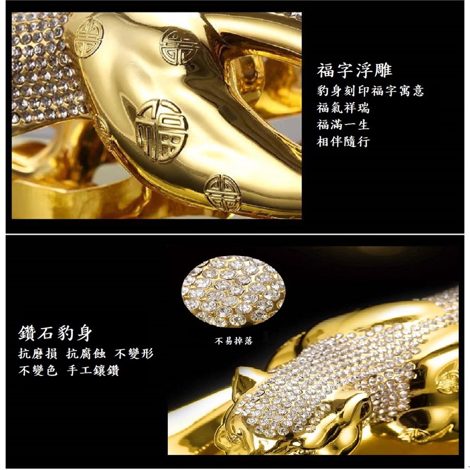 ☆金鑽豹=真賺爆,背上滿滿真鑽造型,代表財氣橫行,正財、偏財,財氣大開,同時豹也擁有如老虎般的避邪力量,因此也能有避邪的作用。