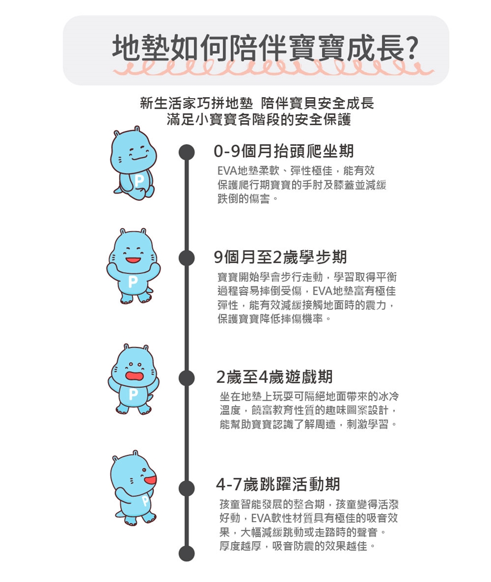 🔆【耐用】 EVA地墊富有極佳的彈性,塑膠材質不易老化,經得起長時間使用,並可隔絕冬季時地面帶來的冰冷溫度。