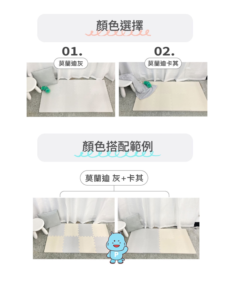 🔆【防水】 表面的獨特防潑水材質,讓液體類物質不會被地墊吸入,易於清潔,擦乾後即可恢復乾燥。