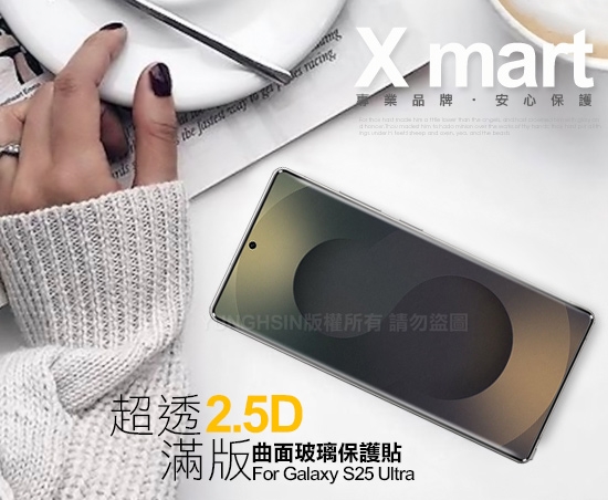 Xmart for Samsung Galaxy S25 Ultra 超透滿版 2.5D 鋼化玻璃貼-黑