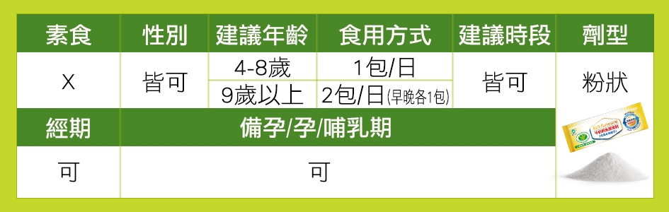4-8歲 1天1包。9歲以上 1天2包。