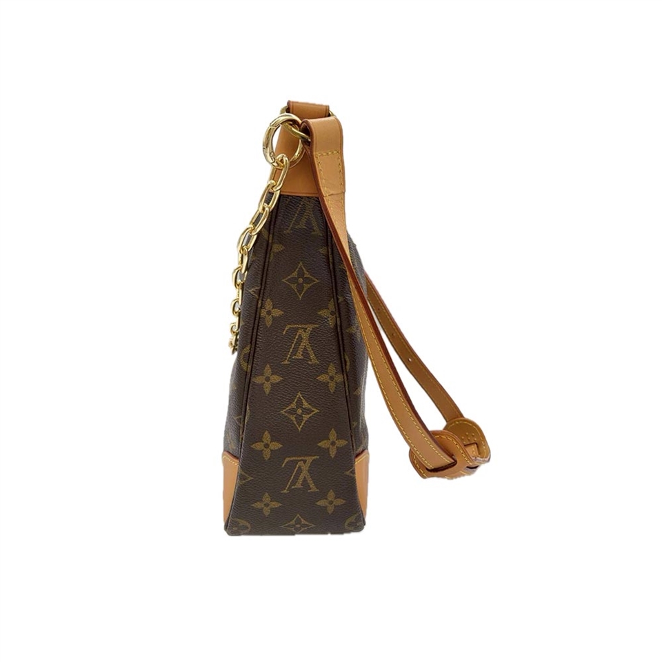 Louis Vuitton 經典 Monogram 老花帆布打造的 大號牛角斜跨包,以流暢的弧形線條勾勒出獨特的「牛角」造型,展現品牌一貫的優雅與創新精神。其大容量設計,完美結合時尚與實用,深受追求經典與功能兼具的時尚人士喜愛。
