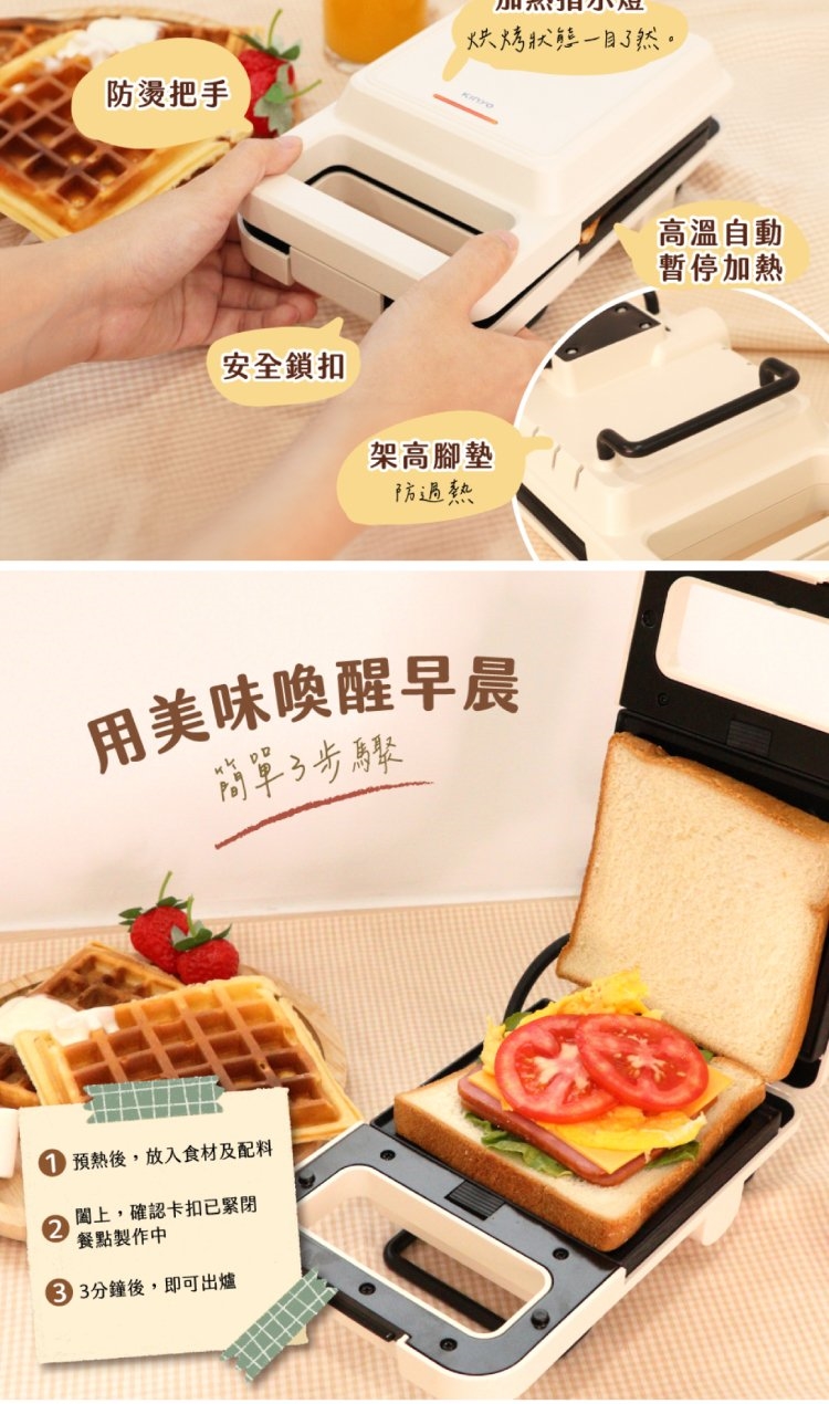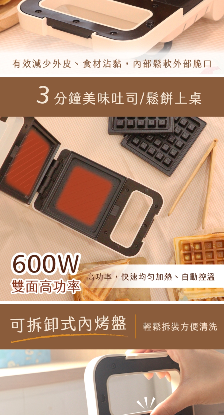 ◎ 配件:三明治烤盤一副、鬆餅烤盤一副