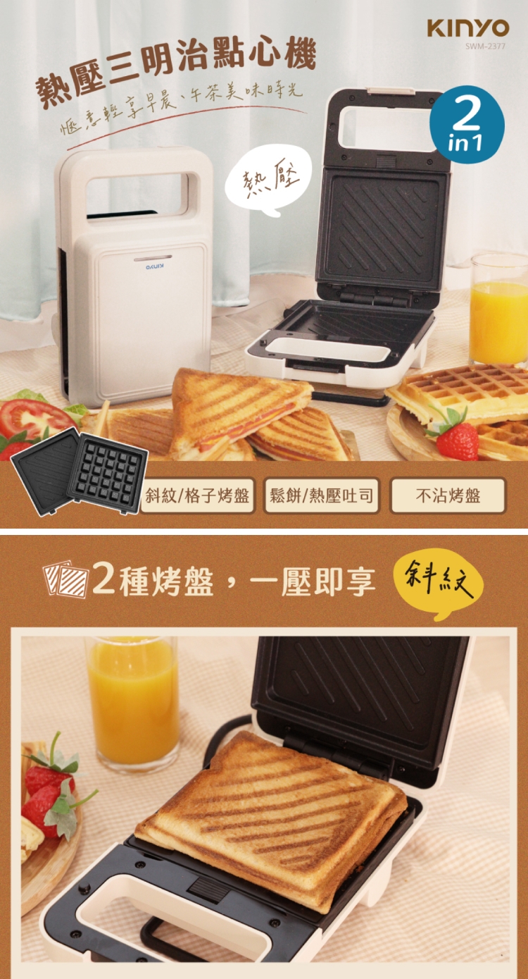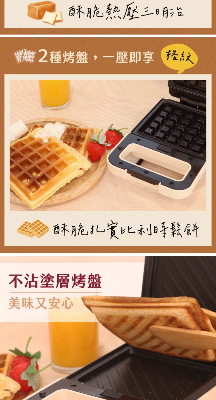 ★ 二種烤盤-輕鬆隨享創意熱壓三明治及美味格子鬆餅