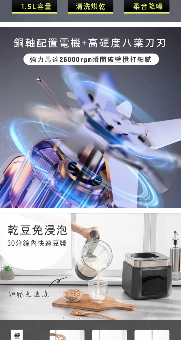 ★ 銅軸配置電機,強力馬達26000RPM,瞬間破壁攪打細膩