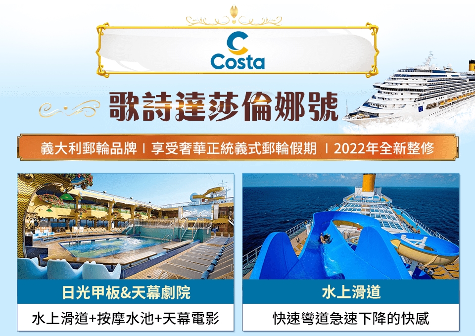 【第1天】 基隆-歌詩達莎倫娜號【郵輪16:00啟航】 |
